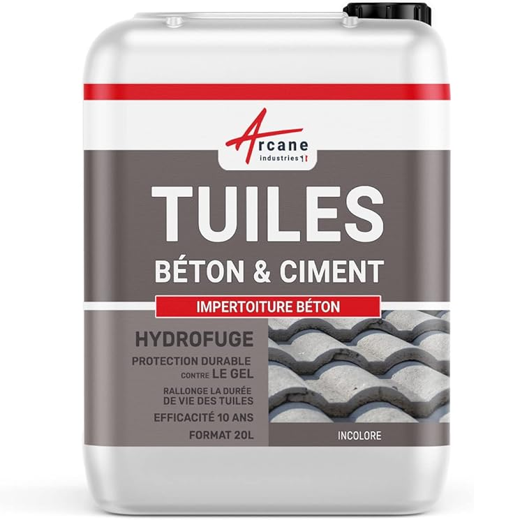IMPERTOITURE, Hydrofuge tuiles béton. Phase solvantée, 2 fois plus durable et résistant qu’une phase aqueuse : Efficace jusqu’à 10 ans – 100% incolore, ne change pas l’aspect de vos tuiles en béton et ciment Rallonge la durée de vie des tuiles en béton et ciment – Contrairement à de nombreux imperméabilisants disponibles, notre imperméabilisant pour tuiles poreuses ne jaunit pas aux UVS Empêche sur le long terme le développement des moisissures en bloquant l’infiltration de l’eau qui est indispensable à leur développement Fabriqué en France