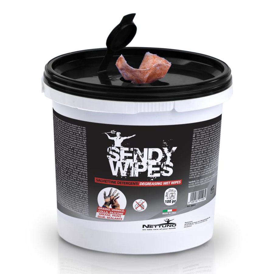 Sendy Wipes de chez Nutteno Boite de 100 Lingettes imprégnées nettoyantes et dégraissantes à usage unique. Polyvalentes, nettoyage efficace des mains, surfaces, outils, machines et objets, elles s’utilisent sans eau, sans savon, sans rinçage et sans résidus. Prêtes à l’emploi pour toute personne ne disposant pas d’un point d’eau. Transportables grâce à leur conditionnement pratique en boite, ces lingettes permettent un nettoyage facile et rapide en tous lieux et toutes circonstances. Sendy Wipes : Lingettes humidifiées extra fortes sans rinçage Lingettes en TNT humidifiées avec agent antibactérien adaptées pour éliminer des mains graisse, huile de lubrification, graphite, peinture, silicone et tous les types de salissure professionnelle. Elles contiennent une charge abrasive très mince qui facilite l’action nettoyante. Elles sont également adaptées pour le nettoyage de machines et surfaces. Application: Frotter sur les mains jusqu’à l’émulsion complète de la saleté. À utiliser sans eau, elles peuvent être utilisées dans tous les contextes et lieux. Lingettes en tissu non tissé Très résistantes, un côté abrasif et un côté délicat avec solvant naturel enrichies avec des émollients contienant un agent antibactérien. Testées selon les standards EN 1276 et EN 12504 Type de salissure : Résines Colles Mastics Mousse polyuréthane Émail Graphite Rouille Huile Graisse Peintures Conseillé pour : Agriculteur/Jardinier Mécanicien Carrossier Charpentier Ouvrier du bâtiment Menuisier Typographe Tanneur Constructeur naval Serrurier Électricien Réparateur des pneus Électricien automobile Métallurgiste Soudeur