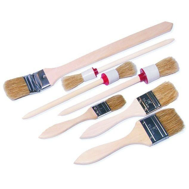 Jeu de pinceaux multiples formats. Pinceaux en poils légers, manche en bois non peints. Ils peuvent être peints à l’huile, à l’acrylique, à l’émulsion, etc. Inclus: 3 brosses plates : 1′, 1,5′, 2′, longueur : 19 cm, 3 pinceaux ronds n° : 2, 4, 6, longueur : 21 cm, pinceau pour peindre radiateurs 1′, longueur 37 cm.